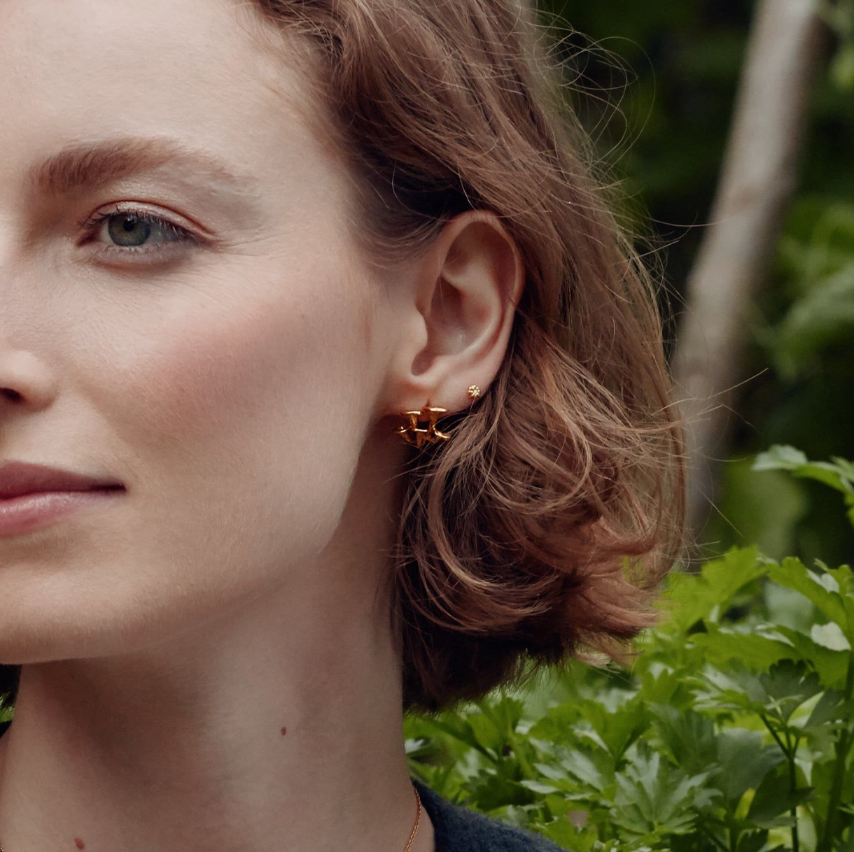 Designed to hug your ear lobe, gorgeous gills are contrasted with perfectly polished mushroom caps to create a cluster fit for the forest. Handmade in England.