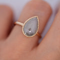 'Anne' Bezel Solitaire Ring w. 2.76ct Pear Shaped Salt & Pepper Diamond