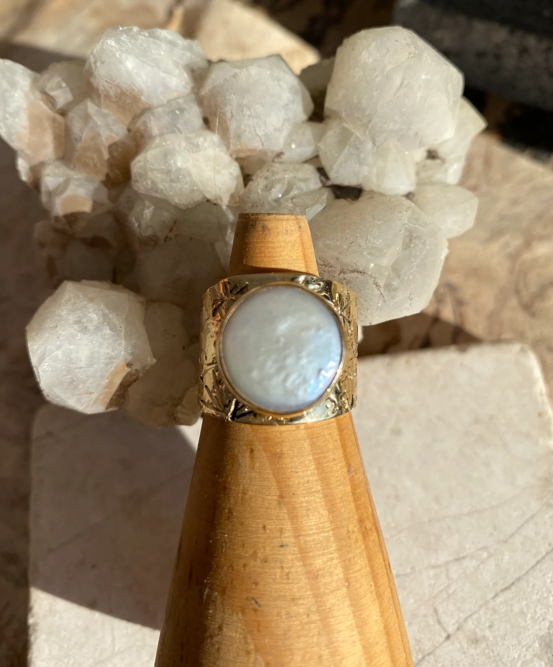 Carry the magic of the moon with you everyday wearing this delightful pearl ring!