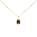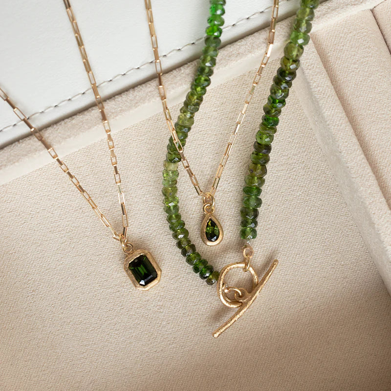 'Boulder' Emerald Cut Green Tourmaline Pendant on Elongated Box Chain