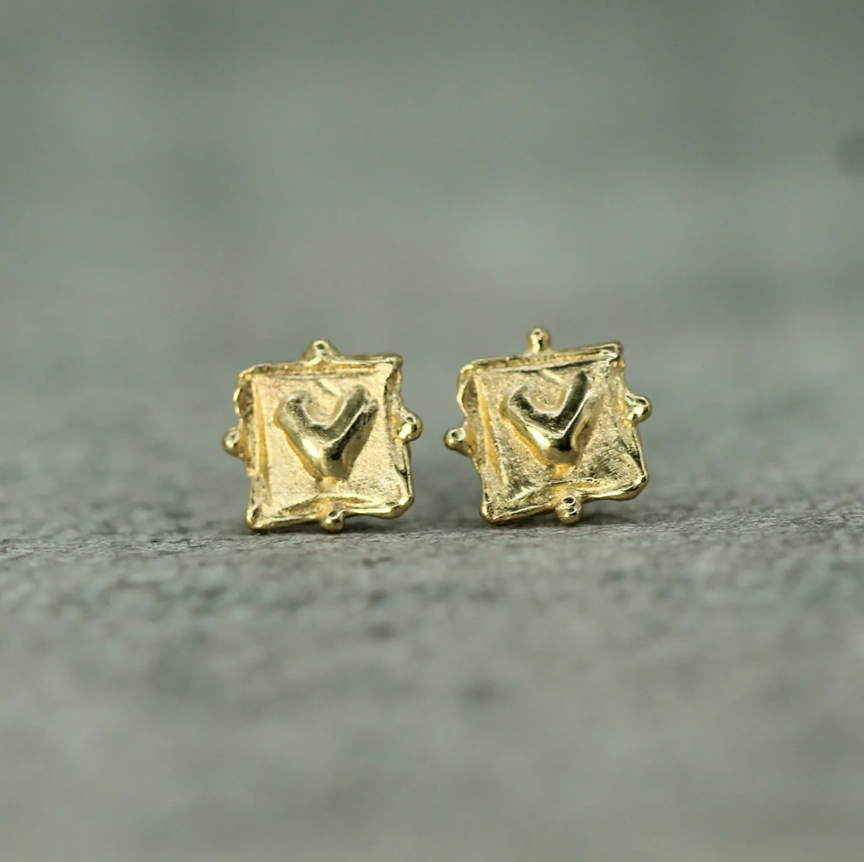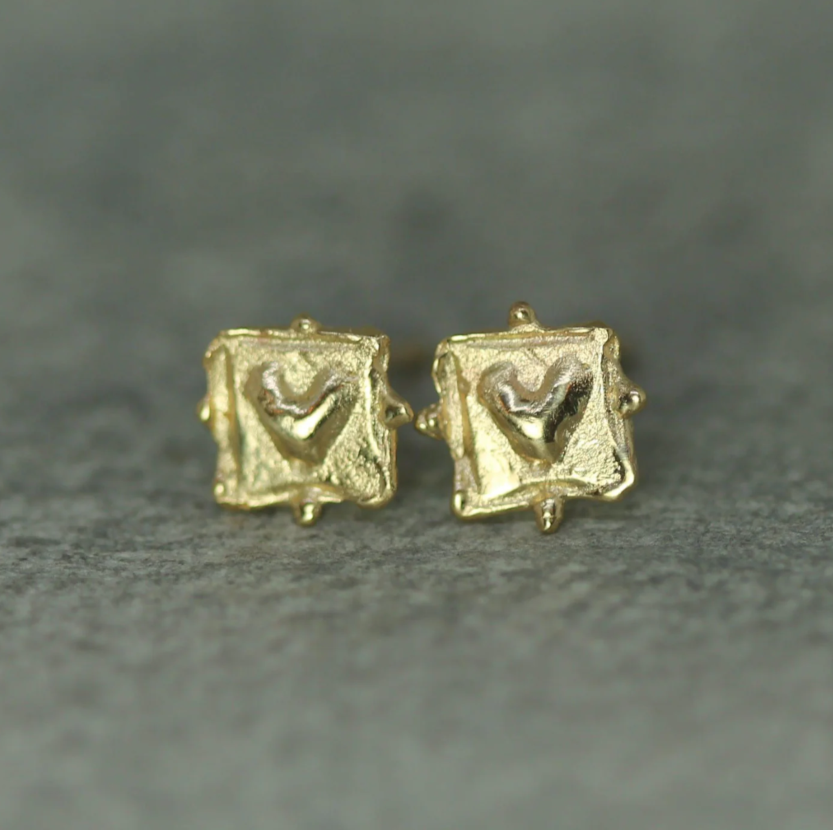 The ”ancient love” design is inspired by the love of friends and family that keeps going even when we don’t get to see each other. It’s hand carved to feel like an ancient treasure. A sweet twist on classic heart earrings.