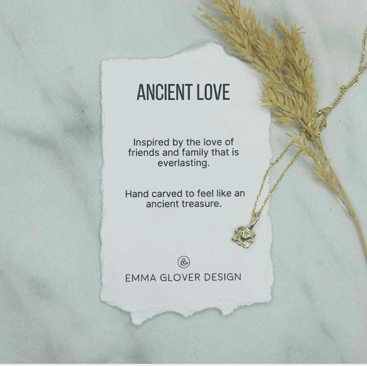 The ”ancient love” heart pendant design is inspired by the love of friends and family that keeps going even when we don’t get to see each other. It’s hand-carved to feel like an ancient treasure.