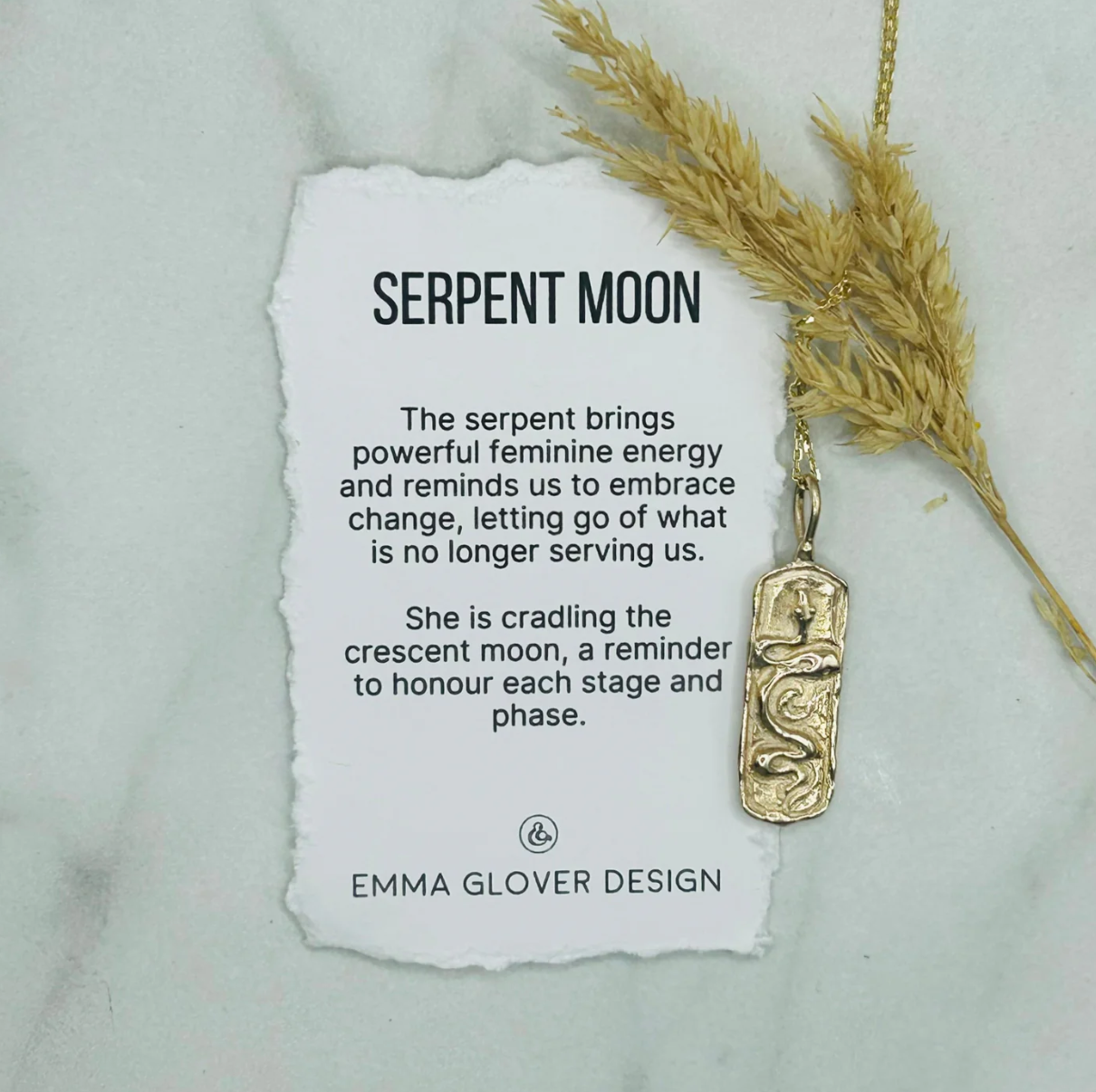 The serpent friend brings powerful feminine energy and reminds us to embrace change and let go of what is no longer serving us.  She is with the crescent moon, reminding us to honour each stage and phase… the journey is just as worth celebrating as the arrival.
