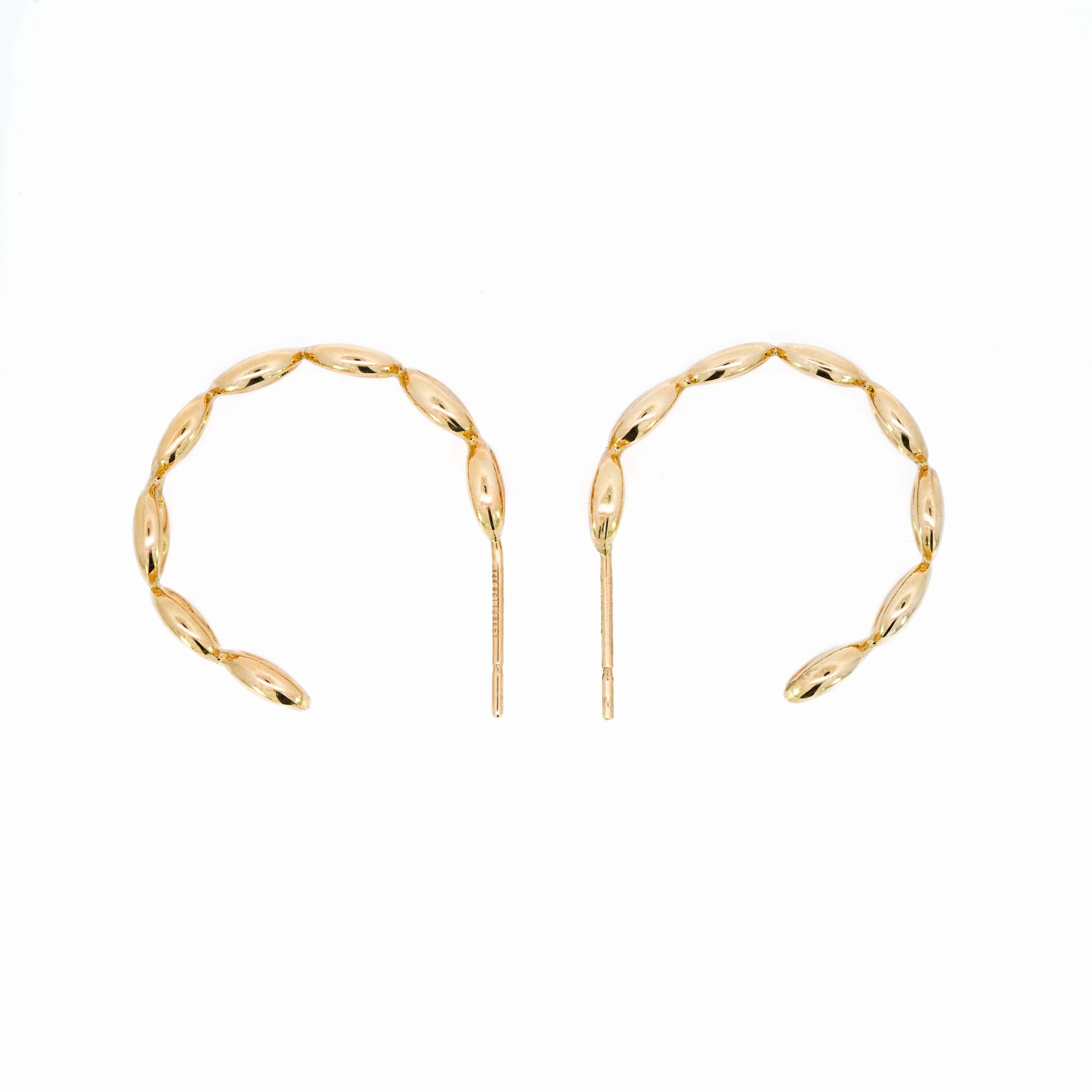 These stunning 14-karat yellow gold 3/4-hoop earrings boast enchanting open anchor links! The friction post offers a secure, comfortable fit with its groove detail, while the classic hoop design encircles your ear from front to back.